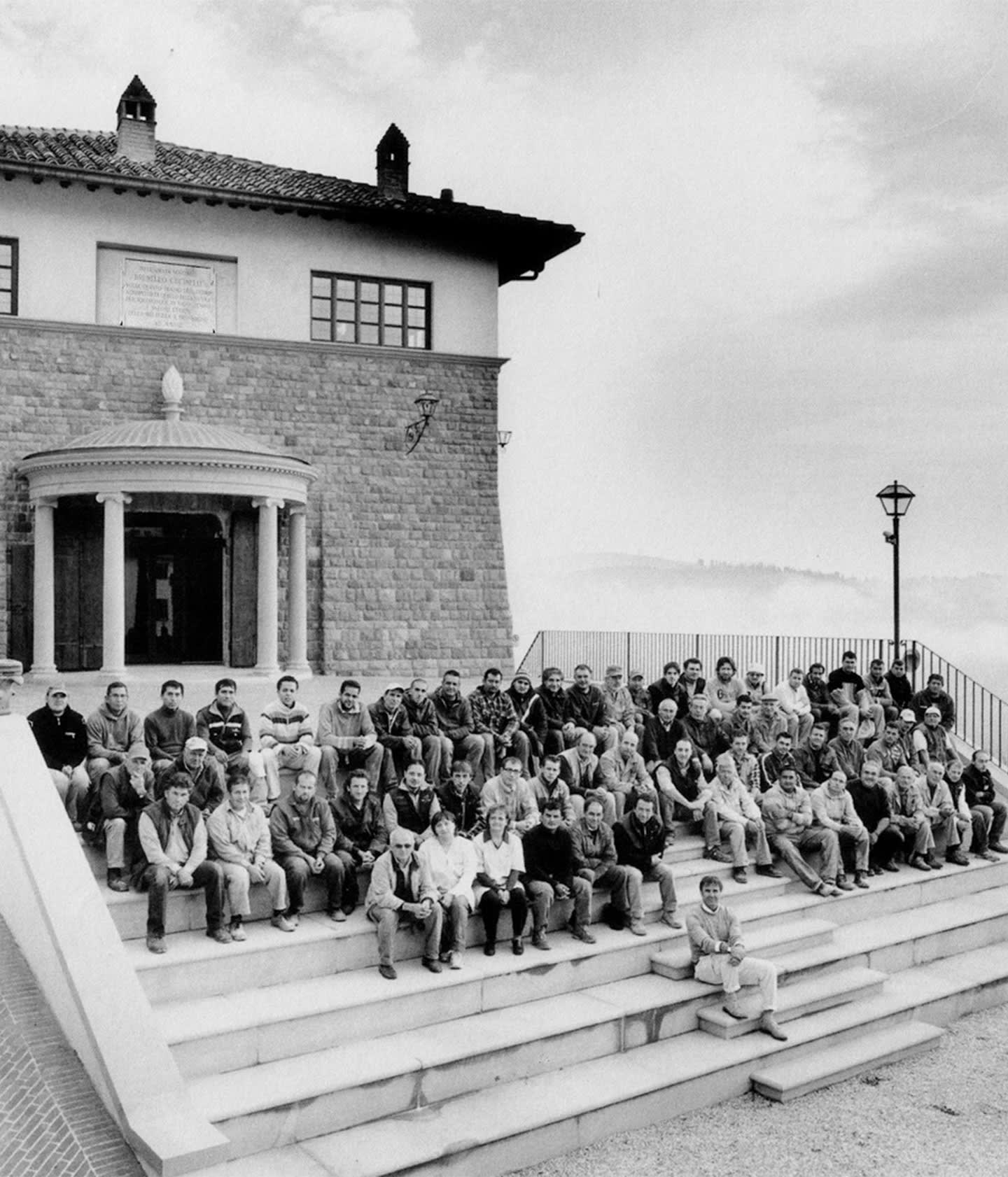 2- Brunello Cucinelli with artisans at the end of the Theater’s construction works, 2008