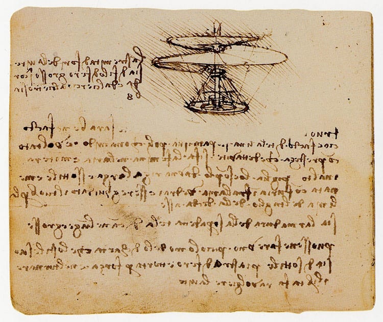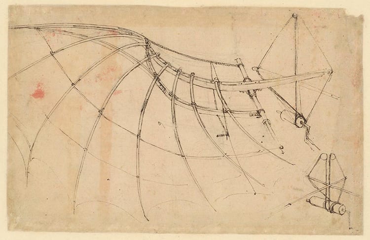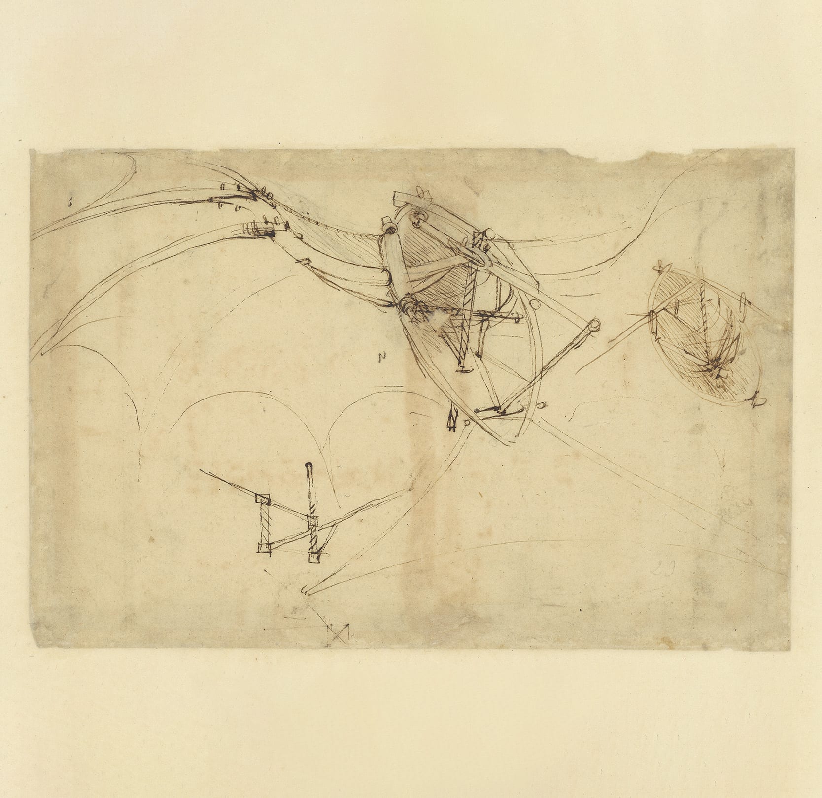 Flying machines, Leonardo da Vinci (1452-1519), belonging to Code B (2173), c.83v, stored at the Institut de France in Paris