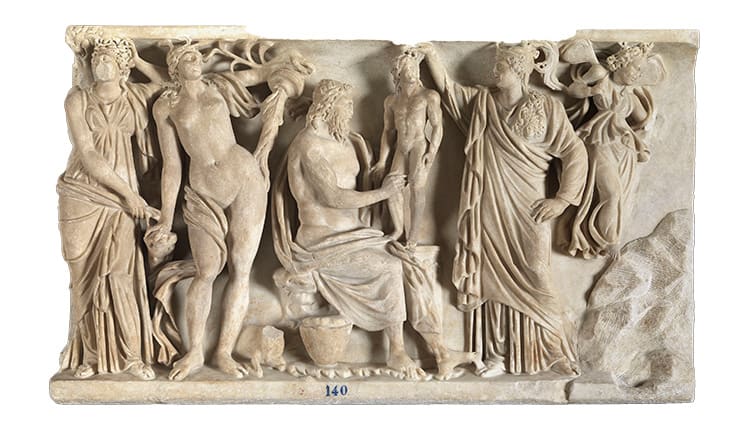 Prometeo modella il primo uomo cui Atena dona l’anima, ponendo sul suo capo una farfalla [in greco antico Psyche], Bassorilievo romano del II secolo D.C., Museo Nacional del Prado © Photo MNP / Scala, Firenze