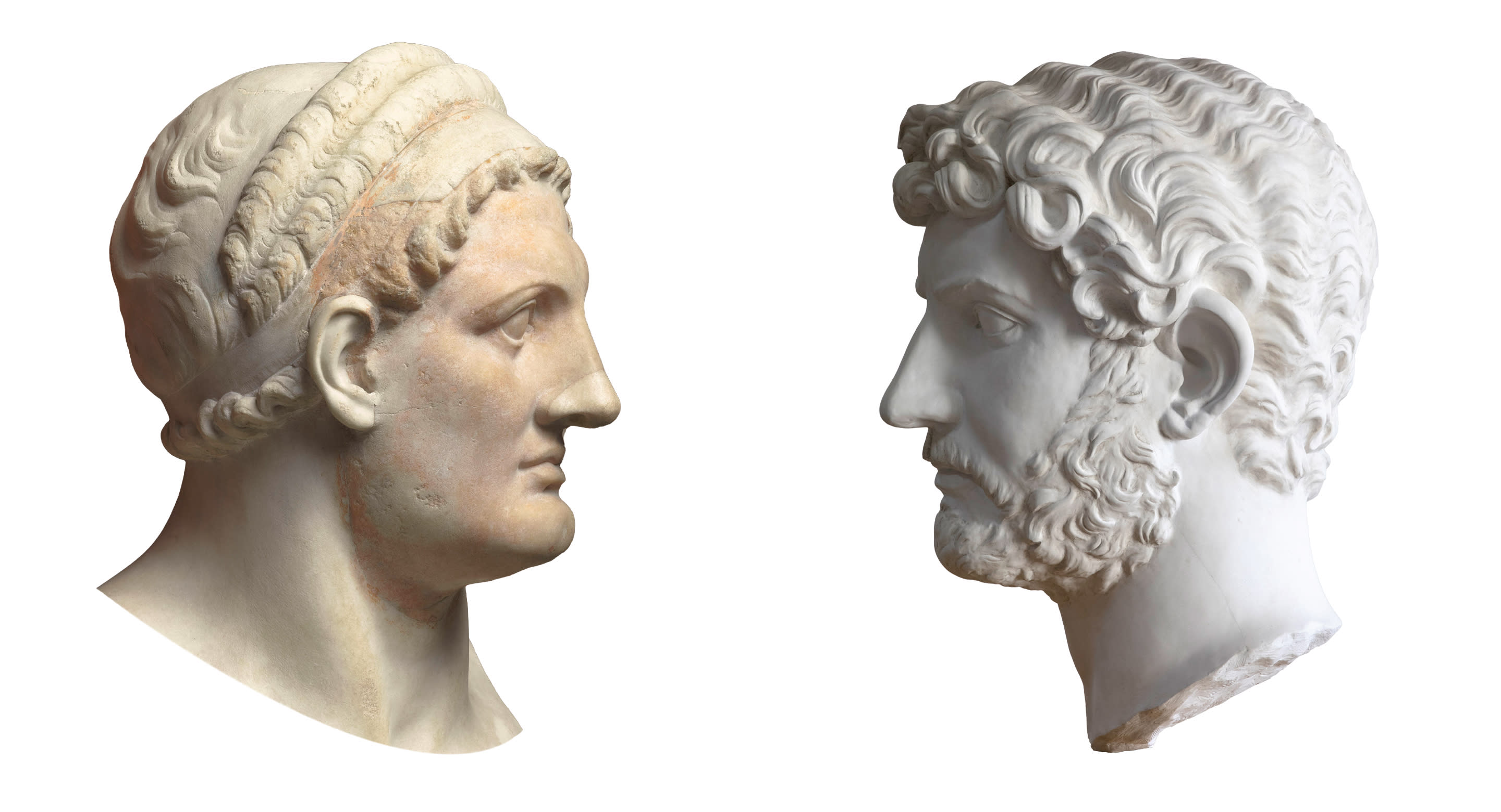 A sinistra: Tolomeo I Sotère (c.367 - 282 a. C.), busto in marmo coevo © 2023, RMN-Grand Palais/Dist. Foto SCALA, Firenze.