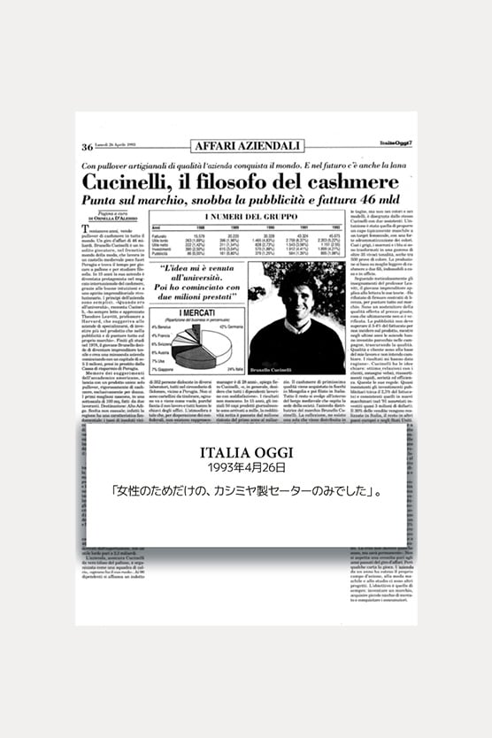 新鮮な姿に生まれ変わったカシミヤは、ウンブリア地方の伝統的なニット産業と現代的で斬新なデザインを融合して、昔と変わらぬ巧みな職人の手で作り上げられ、後世へと受け継がれていきます。