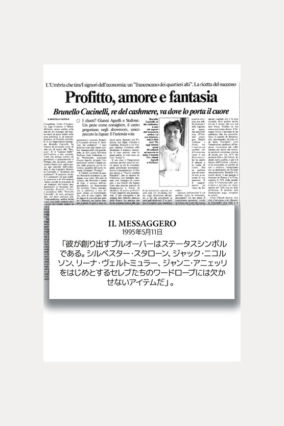 今日のカシミヤの歴史は、ブルネロ クチネリが1978年より新しい魅力とモダンな色使いを導入して新風を吹き込んだソロメオの工房で繰り広げられています。
