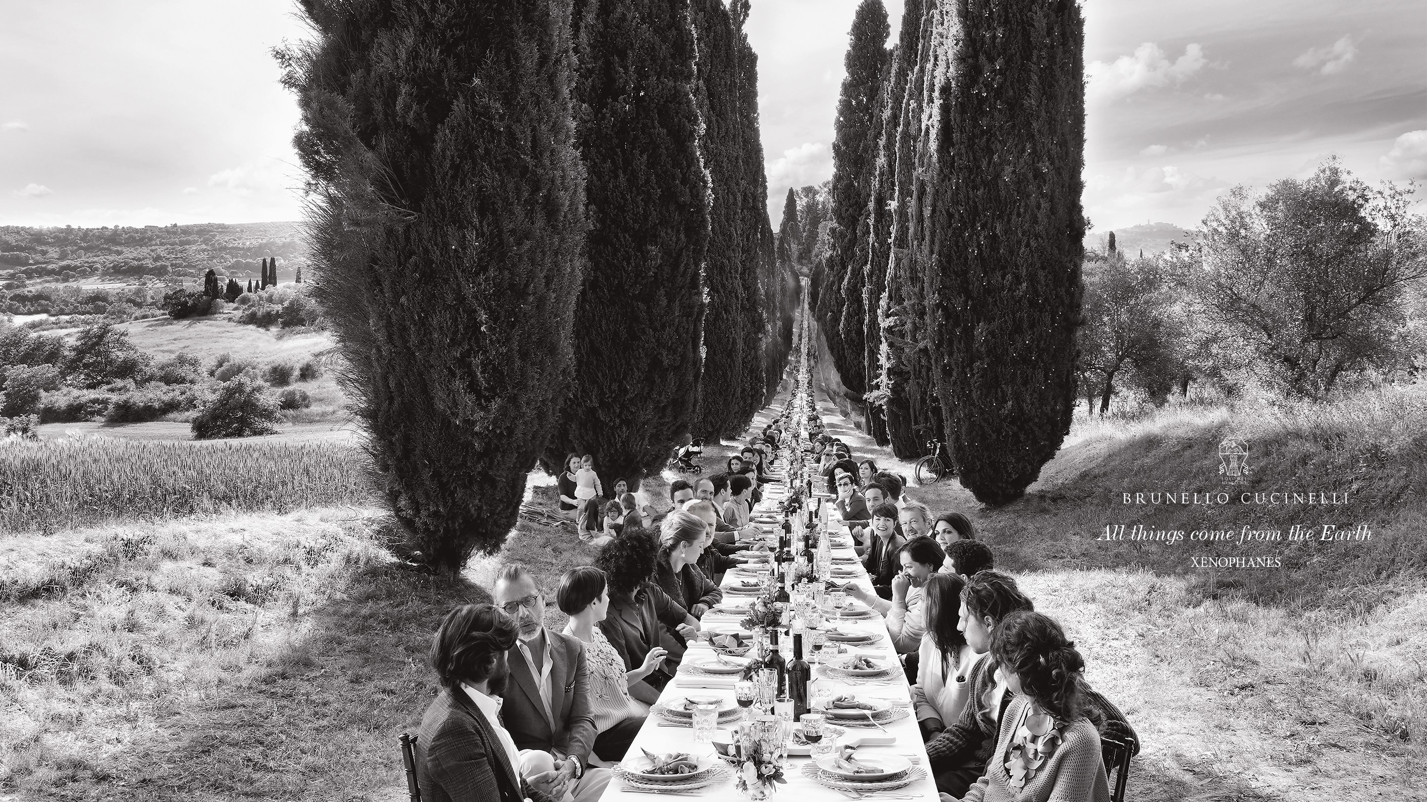 ウンブリアの田園風景をバックに撮影された、2014年秋冬コレクションの企業紹介写真