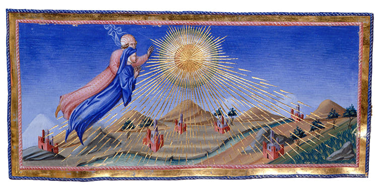 太陽の空へ向かうダンテとベアトリーチェ、ジョヴァンニ・ディ・パオロ作(推測)、15世紀中頃 CC BY