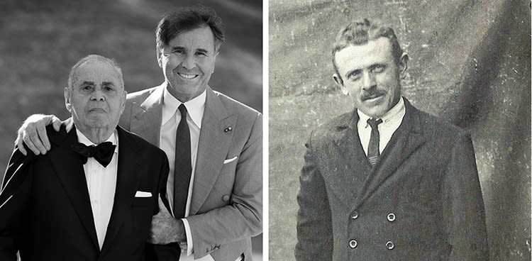 ブルネロ、父ウンベルトと共に、右: 祖父フィオリーノの写真