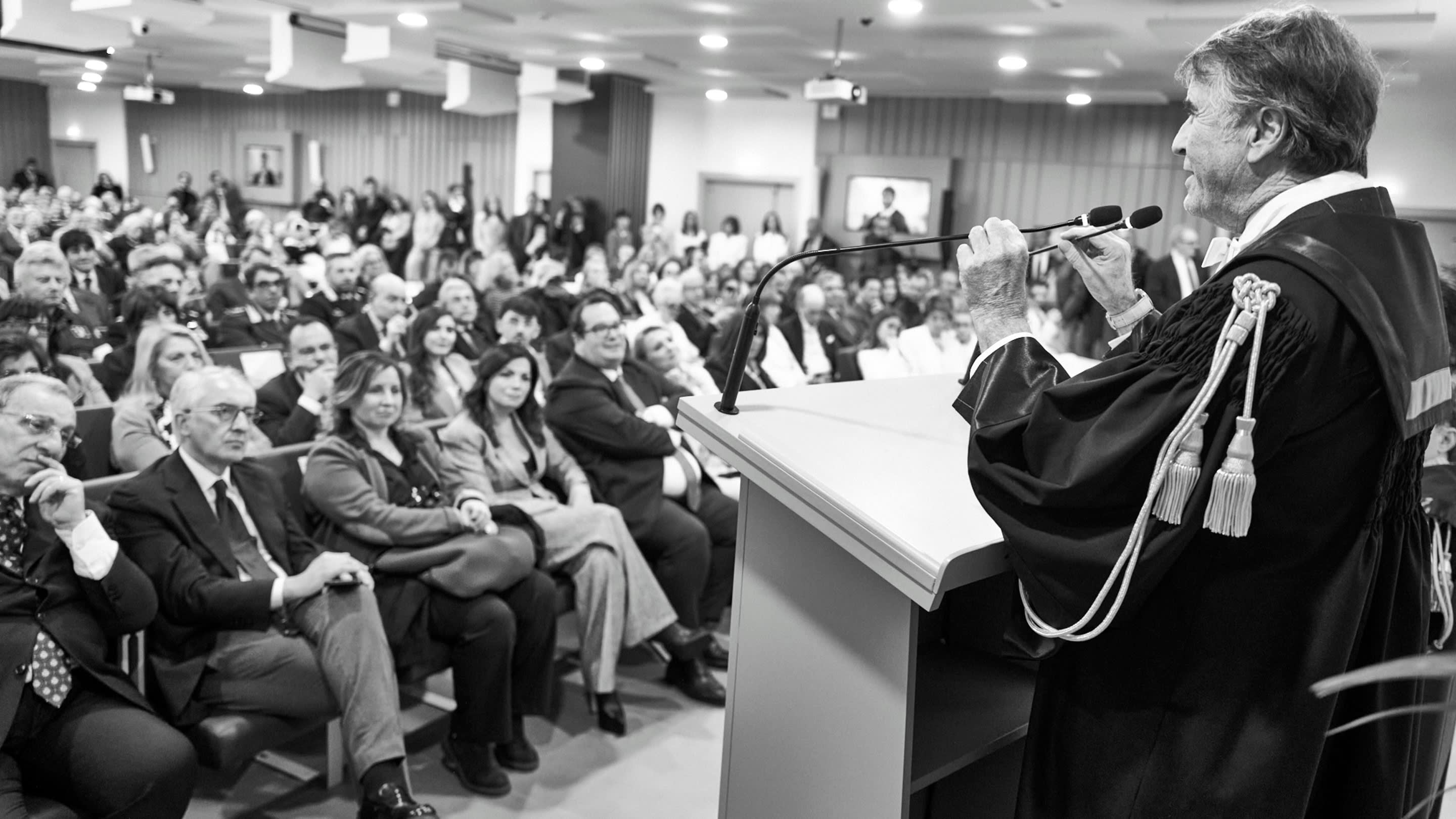 最も尊敬する学長をはじめ、他大学の学長の皆さま、学部長、教授、関係機関の皆さま、そして親愛なる友人たち、本日はこのようにお集まりいただき、心から感謝申し上げます。皆さまのご臨席が、今日という特別な日の喜びをいっそう大きなものにしてくれています。