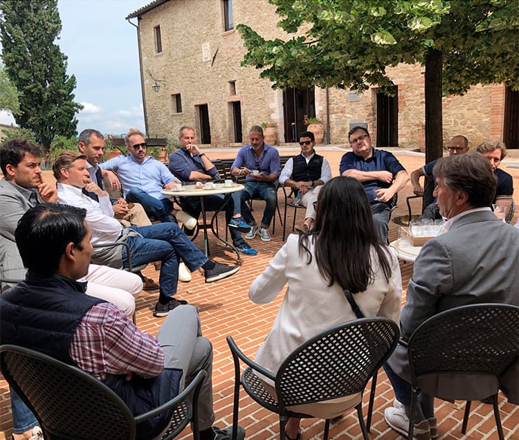 この友人たちのことを僕は第三ミレニアムの若きダ・ヴィンチたちだと思っています。そんな喜ばしき客人たちが僕たちのカシミヤと調和の都ソロメオにやってきてくれたのです。僕の夢すべてが生まれ広がり、ヒューマニティに満ちた経済観の最も理想的な形を守ろうとするこの場所に来てくれた彼らに対し、感謝の気持ちを言葉では言い尽くすことができません。本当に光栄なことだと思っています。