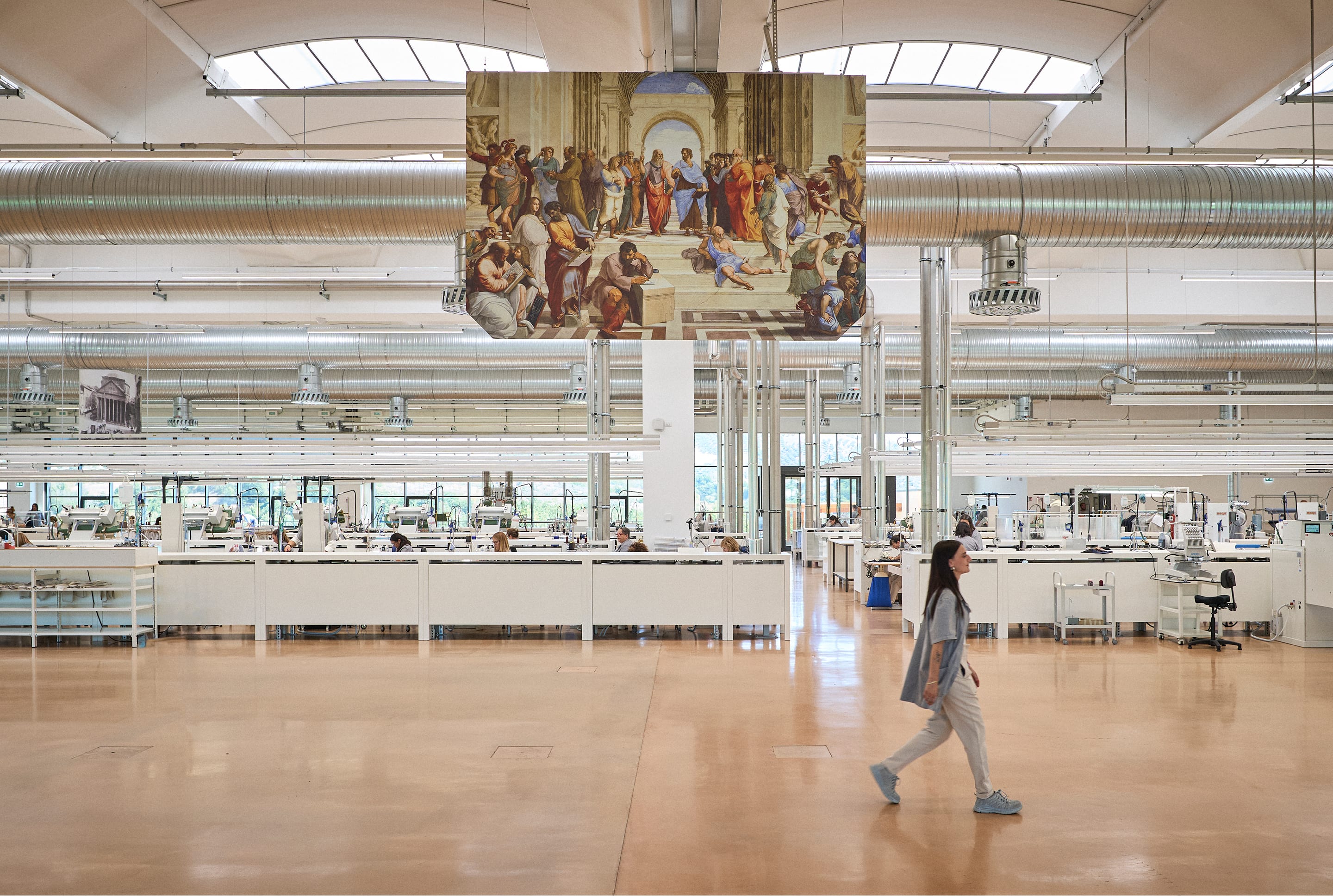 我们的“美好工坊”理念诞生于索罗梅奥小镇,它以追求和谐、美好且舒适的建筑愿景为根基,自工业园区项目起步,如今,随着位于小镇入口处的第二生产基地建成,后续这一理念将逐步推广至所有生产基地,涵盖坐落于托斯卡纳的卡拉拉裁缝工作室、位于阿布鲁佐的彭内裁缝工作室,以及地处翁布里亚的手工针织工坊。