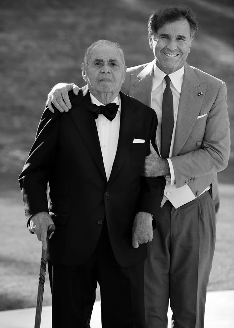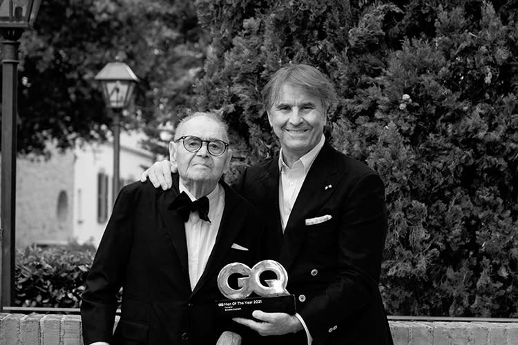 Brunello Cucinelli 与他父亲 Umberto,Brunello 把“2021年度最佳设计师”的荣誉献给了他父亲。
